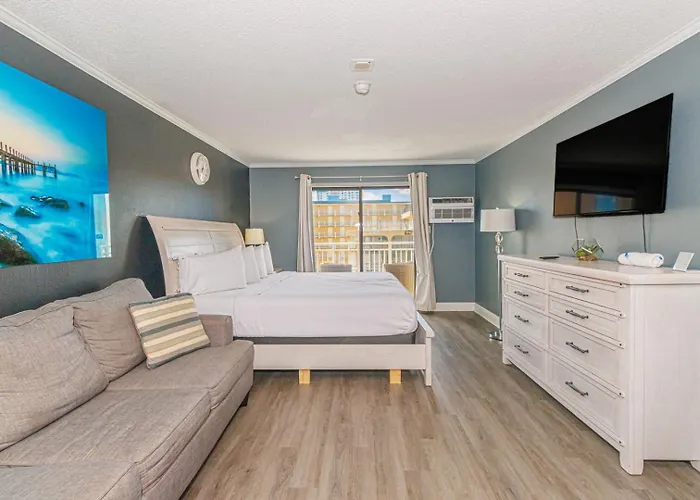 Featuring a lift and a cash machine, Beautifully Updated Queen Suite-Partial Ocean Views! Sea Mist 50601 is located approximately 6 km from The Pavilion Park. Guests can enjoy water sports activities, bowling, and mini golf at the 1-bedroom villa, located at a distance of 4.7 km from Myrtle Beach Pelicans Baseball Club.